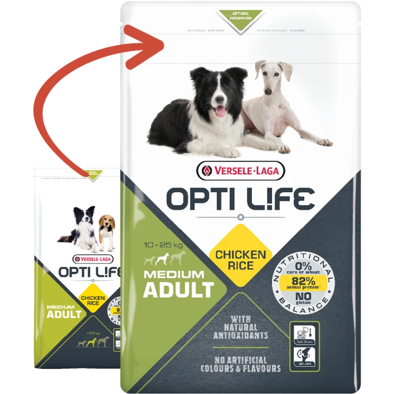 Opti Life Adult Medium est une formule parfaitement équilibrée pour les races moyennes (10kg à 25kg) à base de poulet et de riz, spécialement développée pour que votre chien acquière et conserve une condition physique optimale.