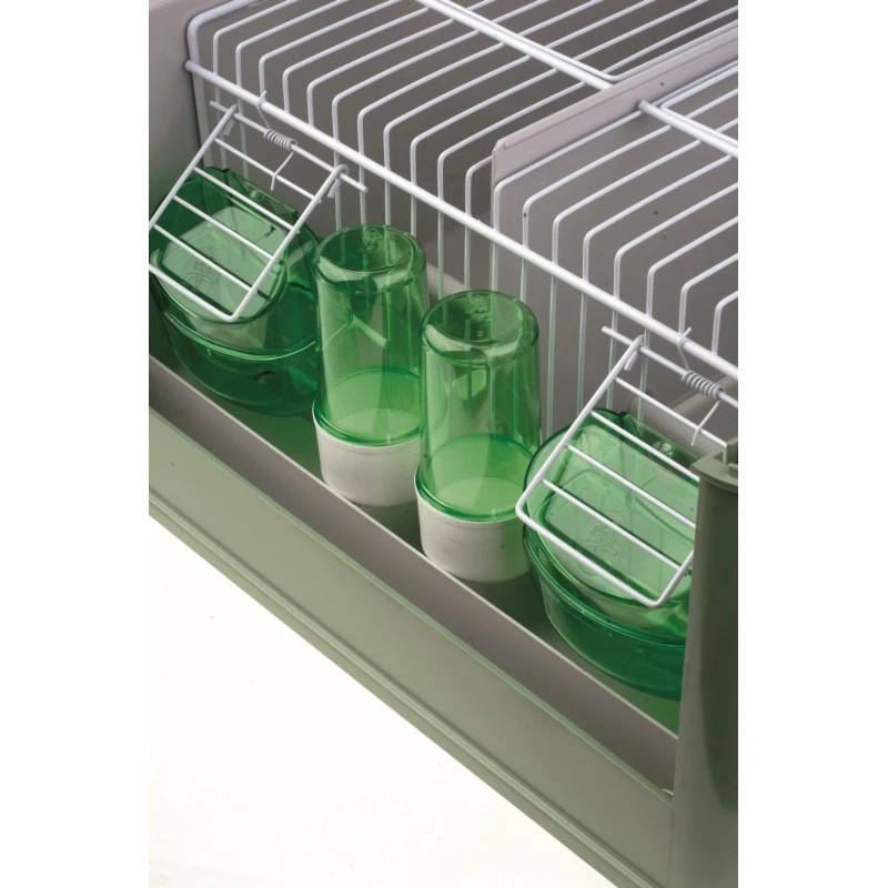Box de transport de couleur verte pour les oiseaux. Livré avec une séparation centrale, deux mangeoires vertes et 2 fontaines vertes. Possibilité de combiner plusieurs box l’un au dessus des autres, grâce au système ingénieux de fixation sur les côtés. Ce box dispose de deux portes arrières ainsi que deux portes sur le dessus à ressorts.