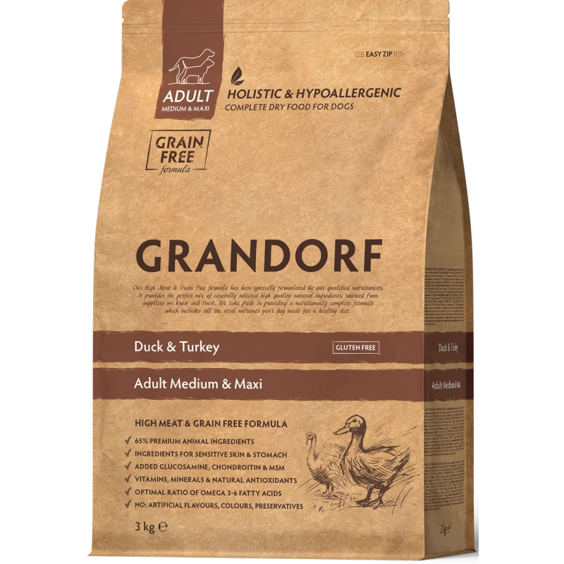 Viande de canard déshydratée, Viande de dinde déshydratée, Patate douce séchée, Viande de canard fraîche, Graisse de dinde, Épinards séchés, Chicorée séchée (une source naturelle de prébiotiques: FOS et inuline), farine de caroube, pomme séchée, krill antarctique séché (source naturelle d’EPA et de DHA), graines de lin, DL-méthionine, glucosamine, chondroïtine, MSM (méthylsulfonylméthane), mélange d’antioxydants naturels (Rosmarinus, Vinis, Curcuma, Citrus, Syzygium). Naturellement conservé avec des tocophérols et du romarin Énergie métabolique: 4,120 kcal/kg