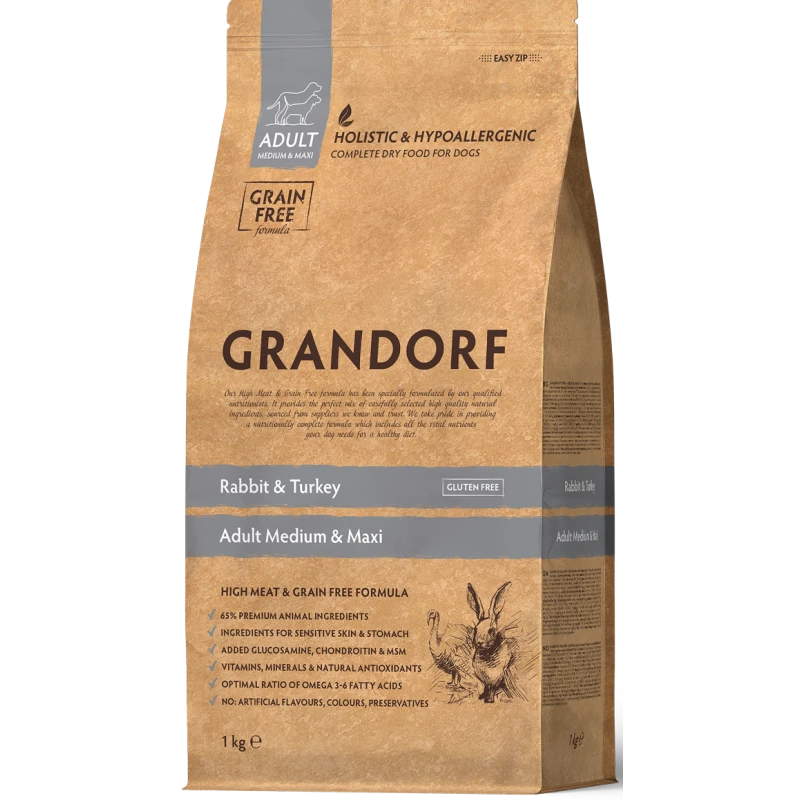 Viande de lapin déshydratée, Viande de dinde déshydratée, Patate douce séchée, Viande de lapin fraîche, Graisse de dinde, Épinards séchés, Chicorée séchée (une source naturelle de prébiotiques: FOS et inuline), farine de caroube, pomme séchée, krill antarctique séché (source naturelle d’EPA et de DHA), graines de lin, DL-méthionine, glucosamine, chondroïtine, MSM (méthylsulfonylméthane), mélange d’antioxydants naturels (Rosmarinus, Vinis, Curcuma, Citrus, Syzygium). Naturellement conservé avec des tocophérols et du romarin Énergie métabolique: 3,960 kcal/kg