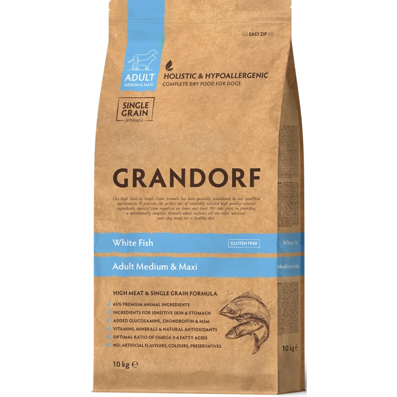 Chien Adult Medium & Maxi Races – Poisson Blanc 10kg – Grandorf