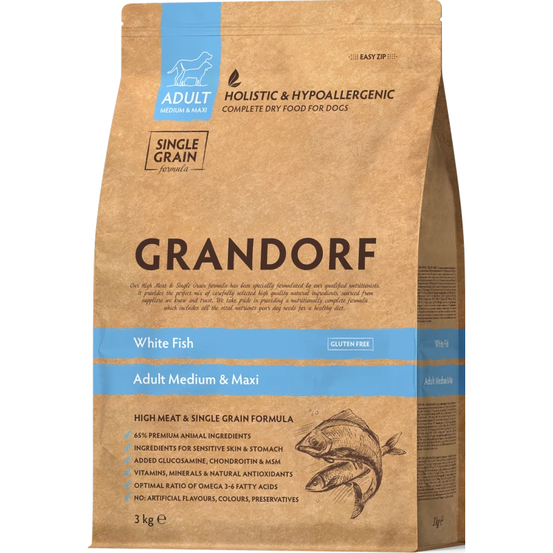 Chien Adult Medium & Maxi Races – Poisson Blanc 3kg – Grandorf
