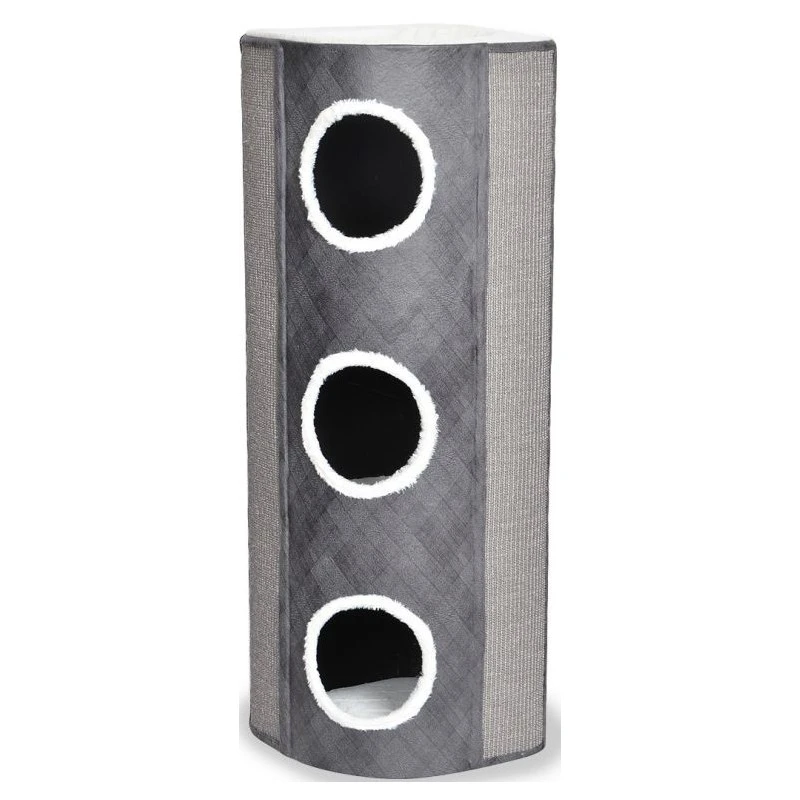Le griffoir Berta de duvoplus est un griffoir élégant qui est parfaitement adapté à un coin ou à un autre endroit dans la maison. Le griffoir est résistant, dispose de 2 grandes alvéoles (20 cm de diamètre) et de larges compartiments. Le griffoir est donc adapté également aux chats de grande taille. La finition est raffinée avec des tissus doux à l`intérieur et à l`extérieur. Votre chat pourra aiguiser ses griffes à sa guise sur les tapis en sisal intégrés des deux côtés. Sans oublier un hamac doux et confortable qui est l`endroit idéal pour chaque chat.