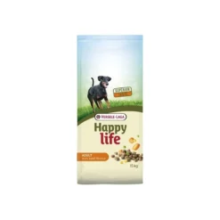Happy life Adult au goût de Bœuf est un aliment délicieux et varié qui fournit tous les éléments nutritifs nécessaires à la vitalité du chien adulte