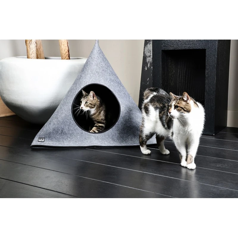 Hellen d`EBI est une maison de chats de qualité supérieure et en feutre qui est parfaitement adaptée aux chats de grande taille. Le velcro qui permet de fermer la partie arrière de la maison est facile à ouvrir pour un stockage peu encombrant lorsque la maison Hellen est rangée.