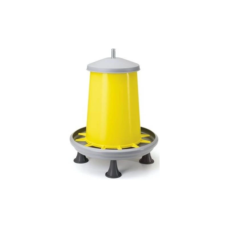 Mangeoire trémie en plastique avec couvercle, tige en métal, bordure anti gaspillage et pieds – capacité 9 litres
