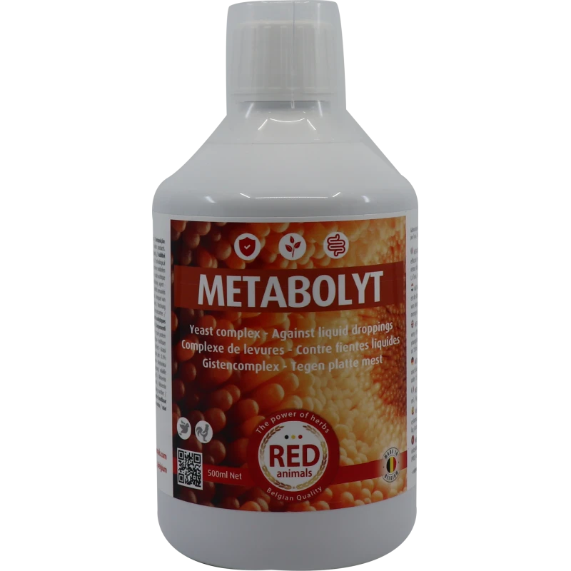 - METABOLYT est un complexe de levures très concentré. Il a un effet immédiat sur la digestion et la flore intestinale.