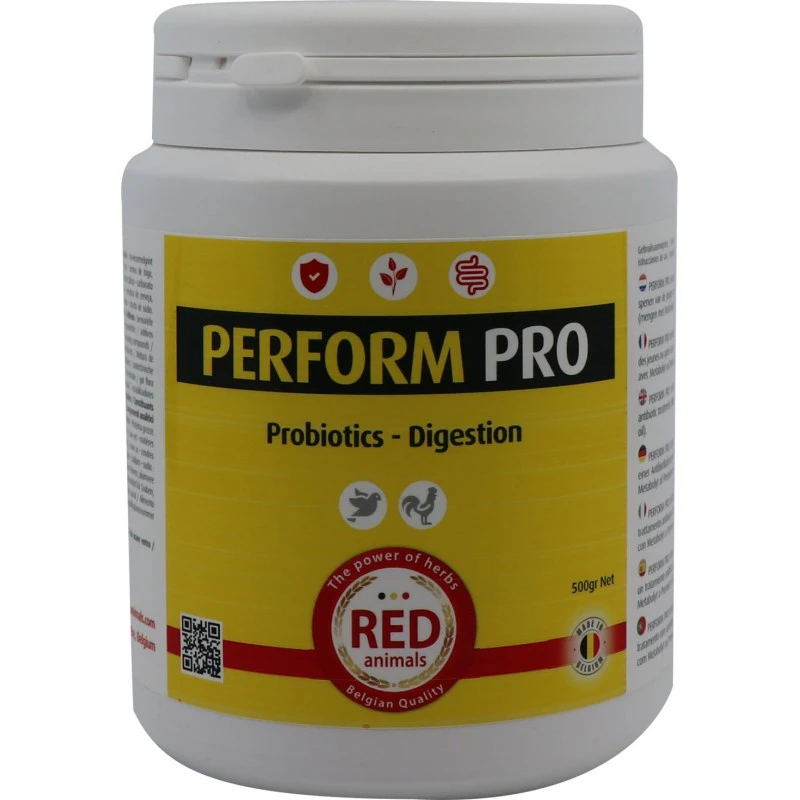 PERFORM PRO est mélange complexe de plantes, argile, levure, huiles essentielles et probiotiques. Il améliore fortement la résistance et renforce l’immunité. Il contribuera à une bonne flore intestinale et à un plumage parfait. Il est aussi fortement recommandé après une cure d’antibiotiques. On peut le donner pendant toute la période d’élevage et au sevrage des jeunes.