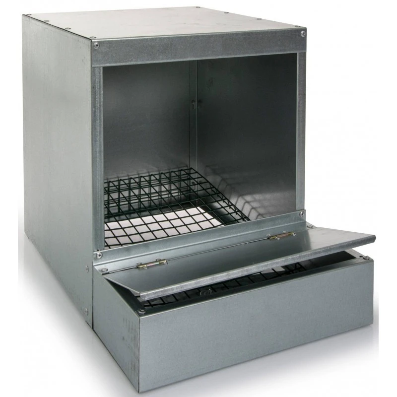 Entièrement galvanisé et donc très pratique à nettoyer, ce revêtement permettra d’avoir une hygiène irréprochable; équipé en face avant d’un tiroir avec couvercle, les oeufs rouleront sur la surface grillagée pour pouvoir ensuite être facilement récupérés ; le couvercle quant à lui, permettra de protéger les oeufs et éviter ainsi aux poules de les manger.