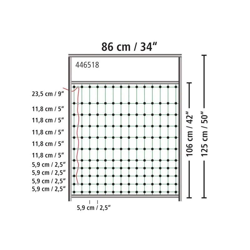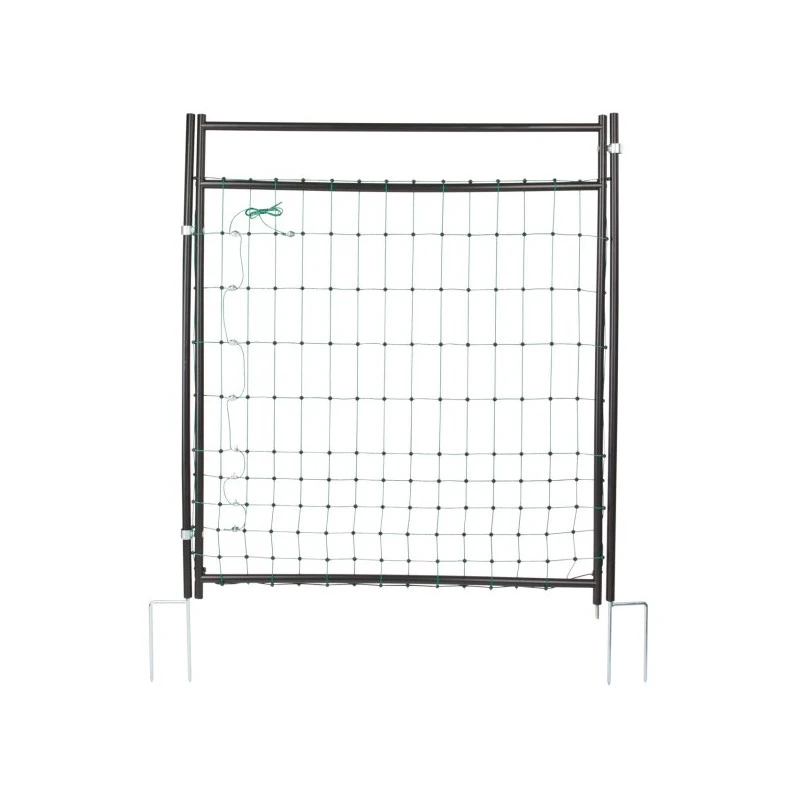 Pour créer un passage simple et rapide dans un filet de clôture. Porte pratique pour votre filet électrifié. Rapide et simple à monter. Peut être montée n’importe où dans le filet – même ultérieurement sur un filet de clôture existant. Le filet vert de la porte est électrifiable, le cadre stable est isolé. L’ouverture de la porte ne nécessite pas de coupure préalable du courant.