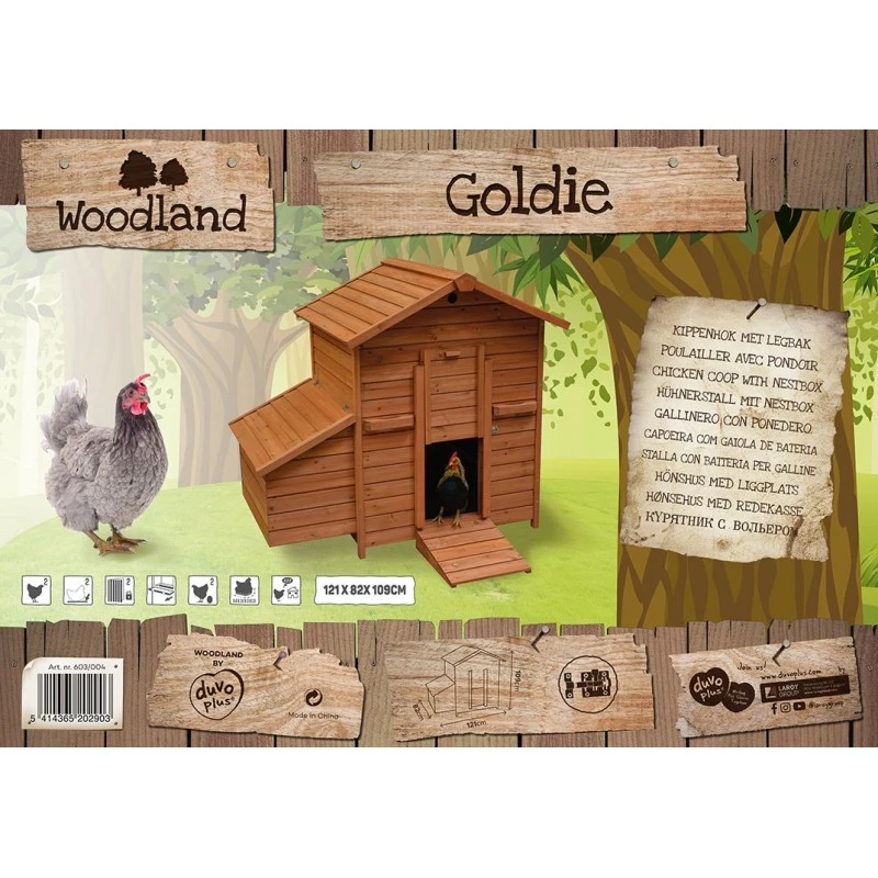Le poulailler Woodland Goldie peut accueillir jusqu’à 2 poules. Il renferme un bac de ponte facilement accessible depuis le haut du poulailler. Sans oublier un perchoir pour se reposer. Le poulailler peut être placé dans n’importe quel enclos à poules. La cage est munie de 4 poignées résistantes pour faciliter le déplacement. Une belle Et grande maison pour les poules !