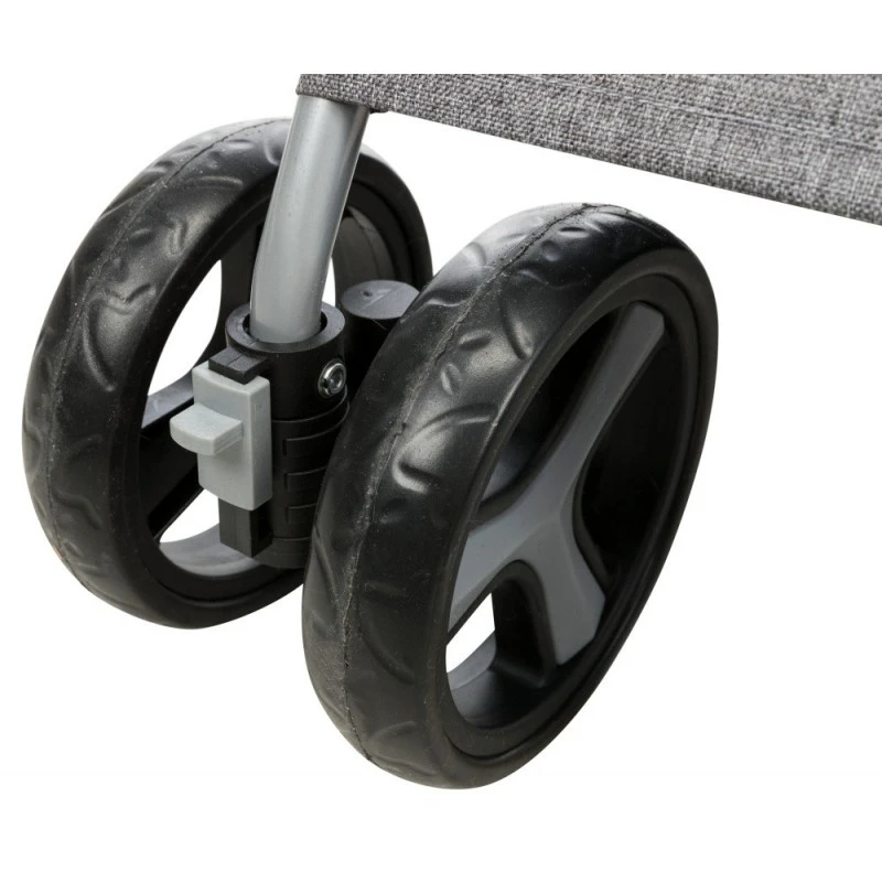 - facile à manipuler grâce à la roue avant pivotante à 360°, à ressort