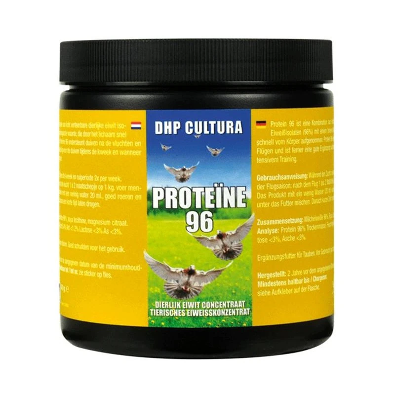 Protein 96 est une forme unique de concentré protéique.Il est indiqué pour une récupération rapide après les vols, qui est facilement absorbée par les pigeons.