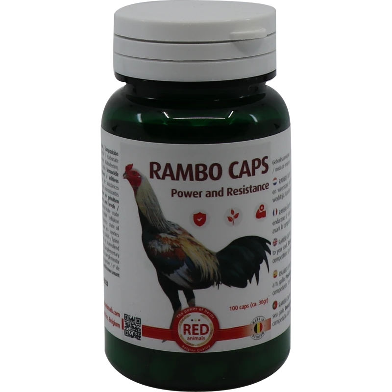 RAMBO CAPS est un tonifiant naturel pour coqs. Composé uniquement d’extraits de plantes, il donne à vos coqs une puissance et une résistance incroyable.