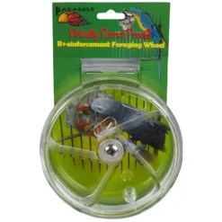 Remplissez la roue de nourriture avec des bonbons ou (une partie de) sa nourriture quotidienne. L’oiseau tourne la roue, puis il y a une ouverture au niveau de la nourriture et il obtient sa récompense.