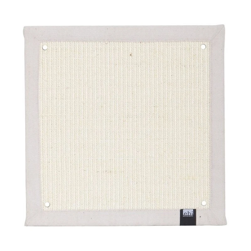 Le tapis griffoir carré Krappa d’EBI est un tapis à suspendre au mur. La partie à griffer est constituée de sisal solidement tissé et est finie au moyen d’un bord large en tissu d’intérieur. Ce tapis griffoir affiche donc un rayonnement élégant. L’avantage offert par un élément mural est que vous pouvez adapter la hauteur à la taille de votre chat. Veillez à ce que le tapis soit suspendu à une hauteur qui permet au chat de s’étirer entièrement. Les éléments peuvent aussi être utilisés comme plaques d’escalade et sont faciles à combiner avec d’autres éléments Krappa pour créer une paroi d’escalade complète. Les vis et chevilles sont fournies.