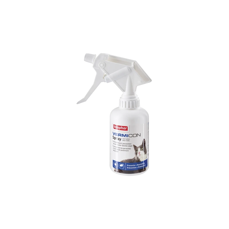Le Vermicon Spray à base de Dimethicon immobilise les puces, tiques et insectes tels que les moustiques, mites, poux, phlébotomes etc. de façon purement physique. Le spray ne contient pas d’insecticides chimiques. Le Dimethicon forme une pellicule qui agit comme un ‘sticky trap’: les puces, tiques et insectes sont paralysés par immobilisation physique de leurs articulations. Le Dimethicon fonctionne lors de tous les cycles de vie de la puce.