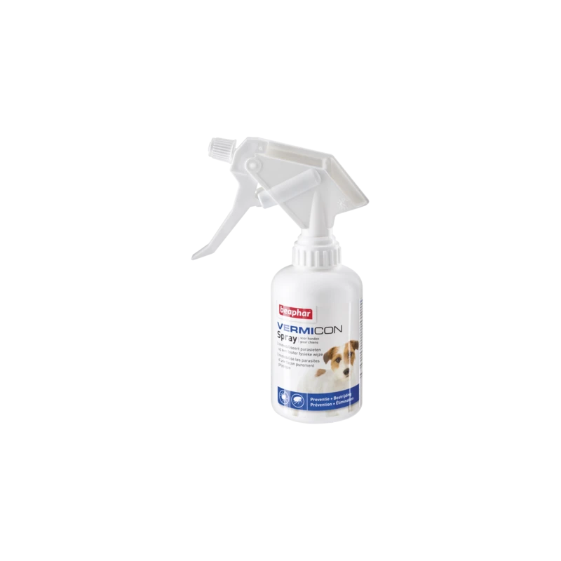 Le Vermicon Spray à base de Dimethicon immobilise les puces, tiques et insectes tels que les moustiques, mites, poux, phlébotomes etc. de façon purement physique. Le spray ne contient pas d’insecticides chimiques. Le Dimethicon forme une pellicule qui agit comme un ‘sticky trap’: les puces, tiques et insectes sont paralysés par immobilisation physique de leurs articulations. Le Dimethicon fonctionne lors de tous les cycles de vie de la puce.